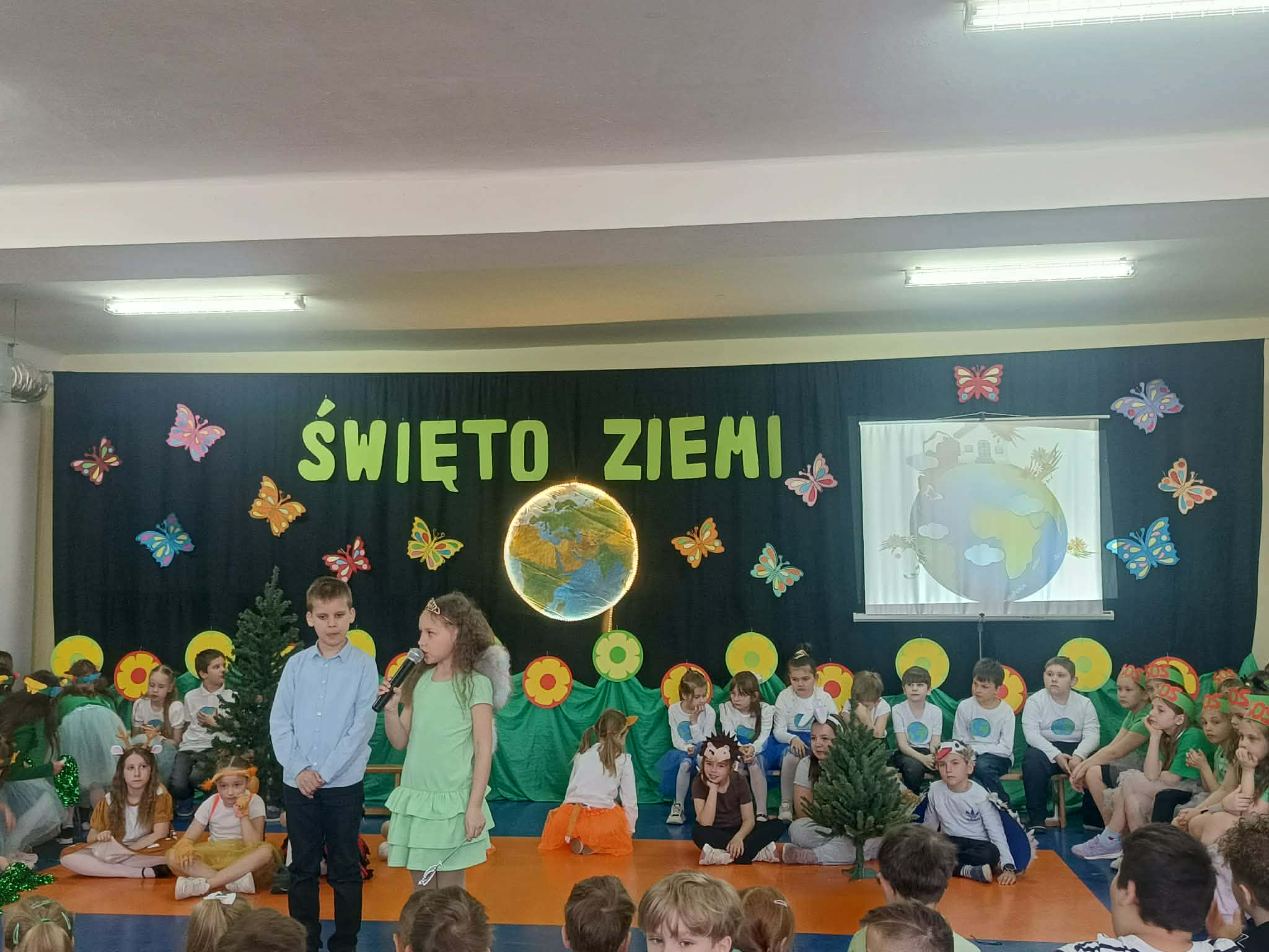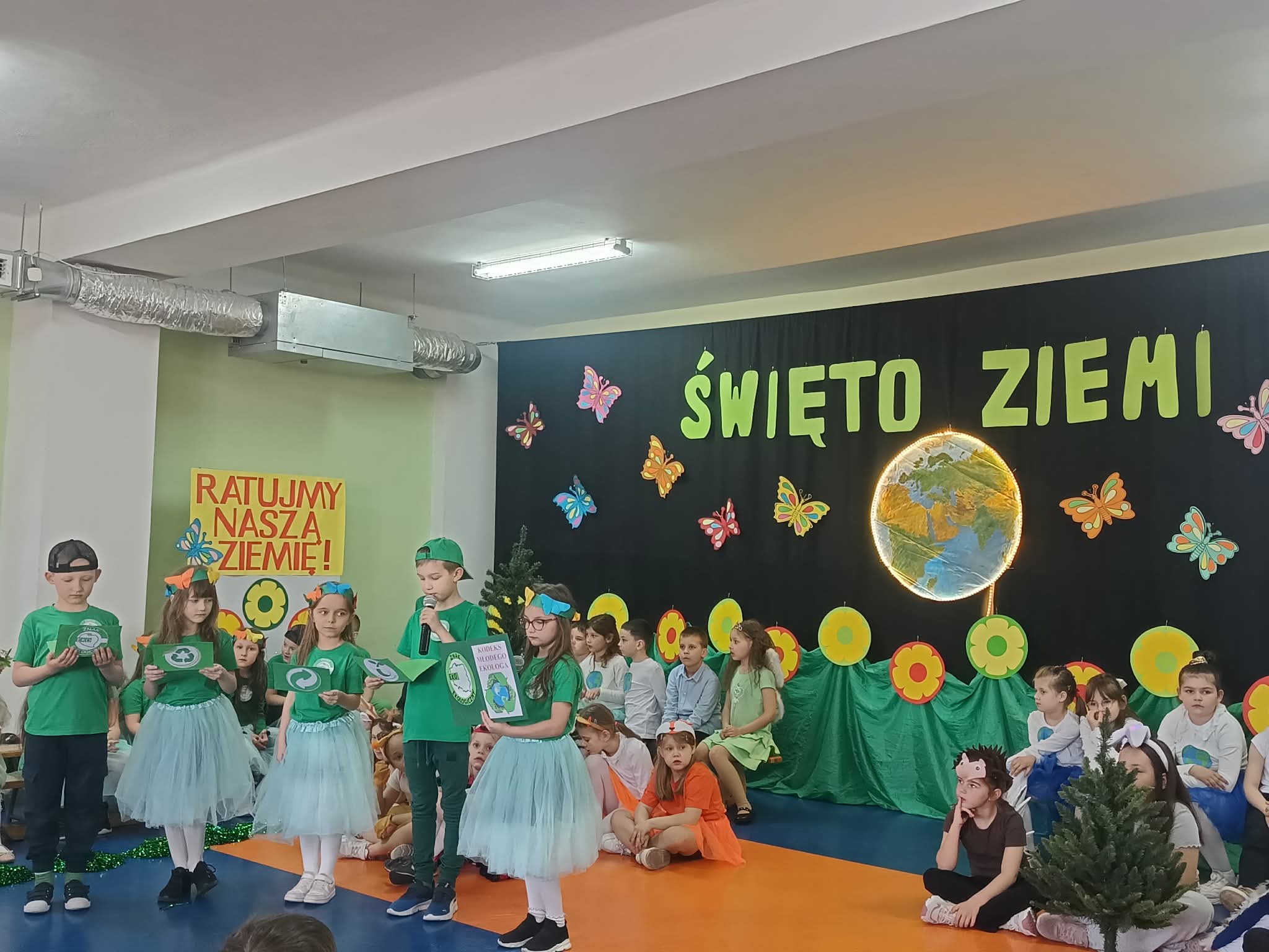 Nasi mali aktorzy zaprezentowali się w różnych formach artystycznych. Występ wzbogaciły piękne piosenki i tańce. Nasi uczniowie odczytali kodeks młodego ekologa, czyli niezwykle ważne zasady, które powinny towarzyszyć wszystkim dzieciom i dorosłym.