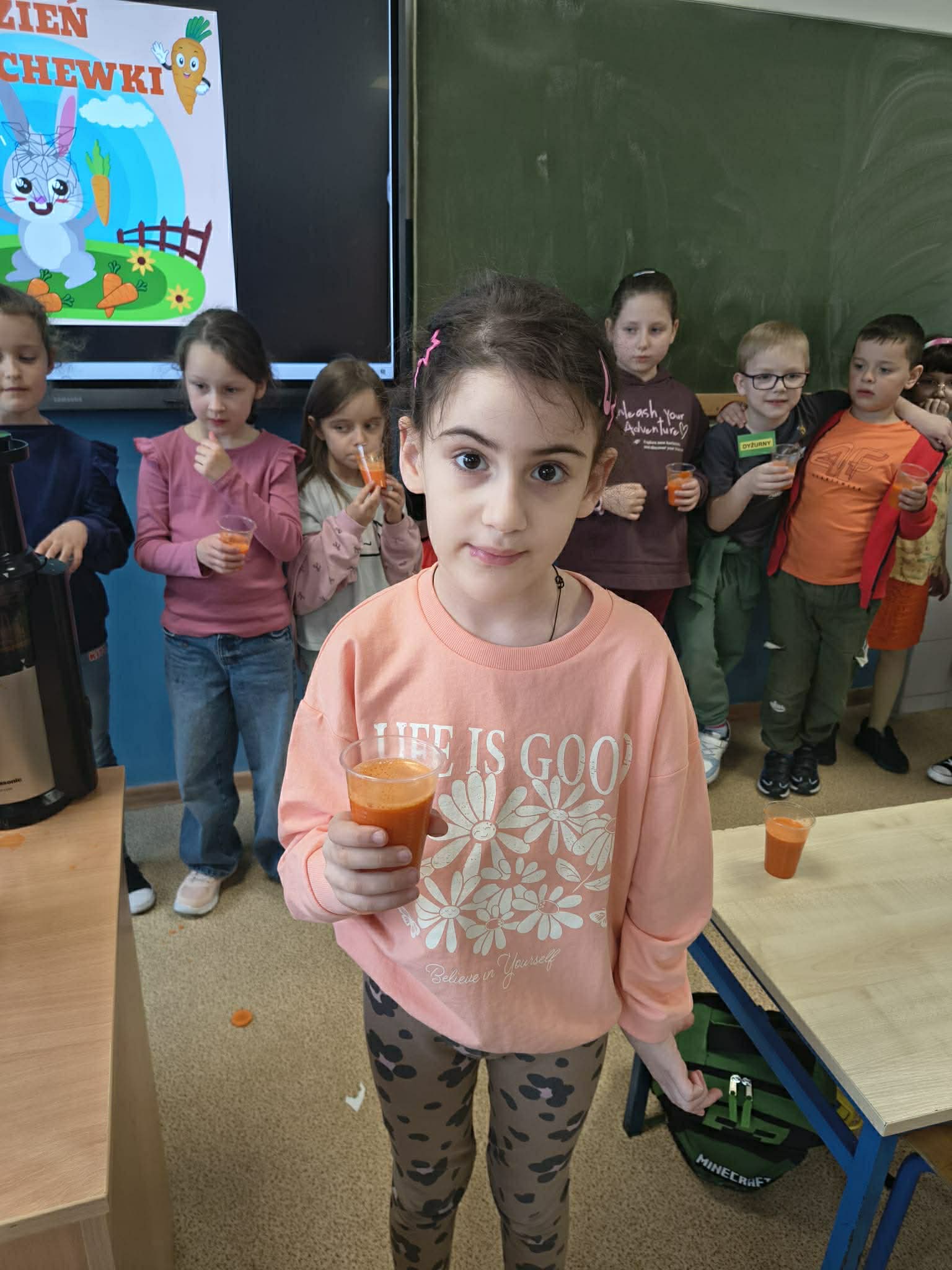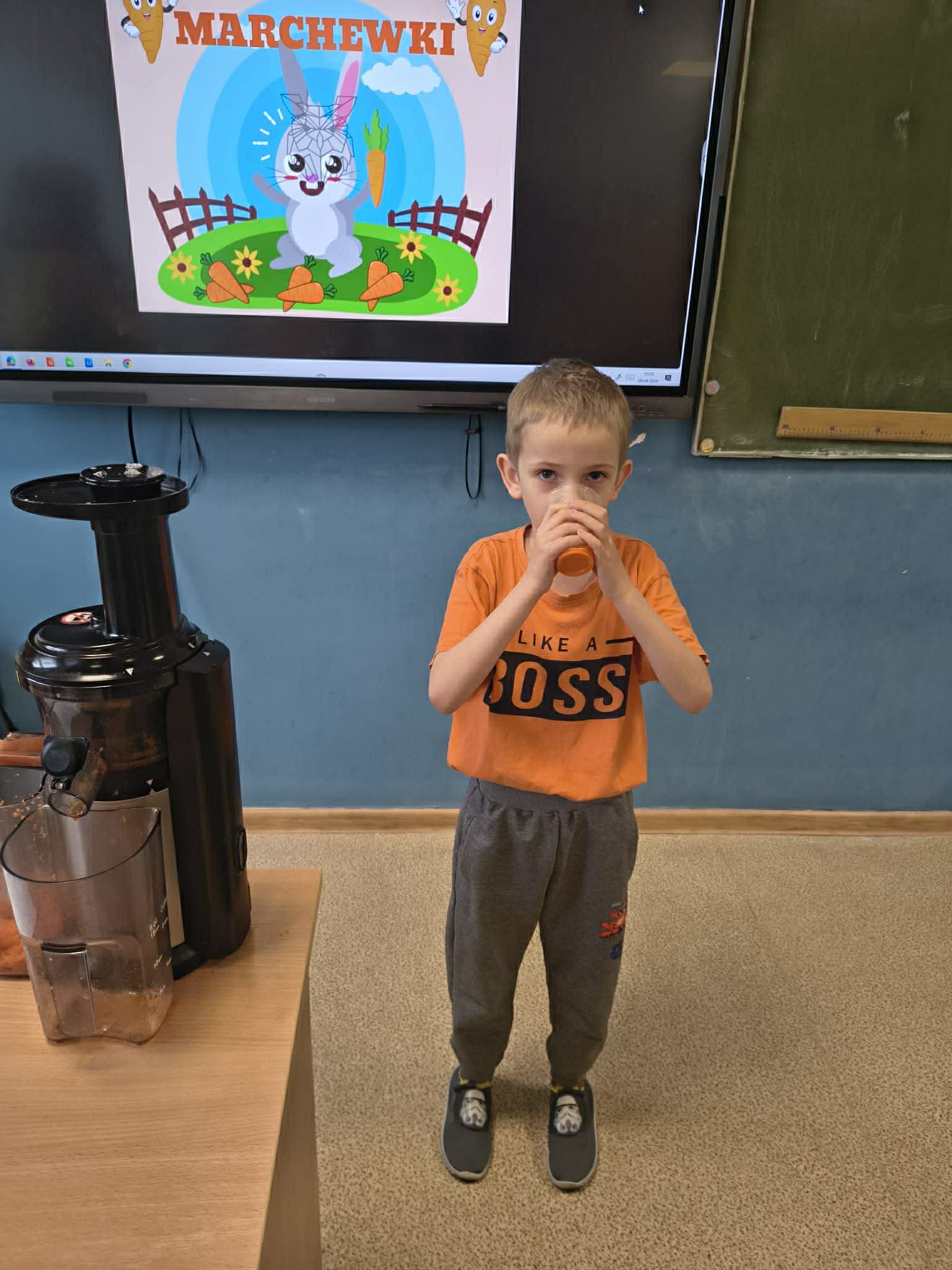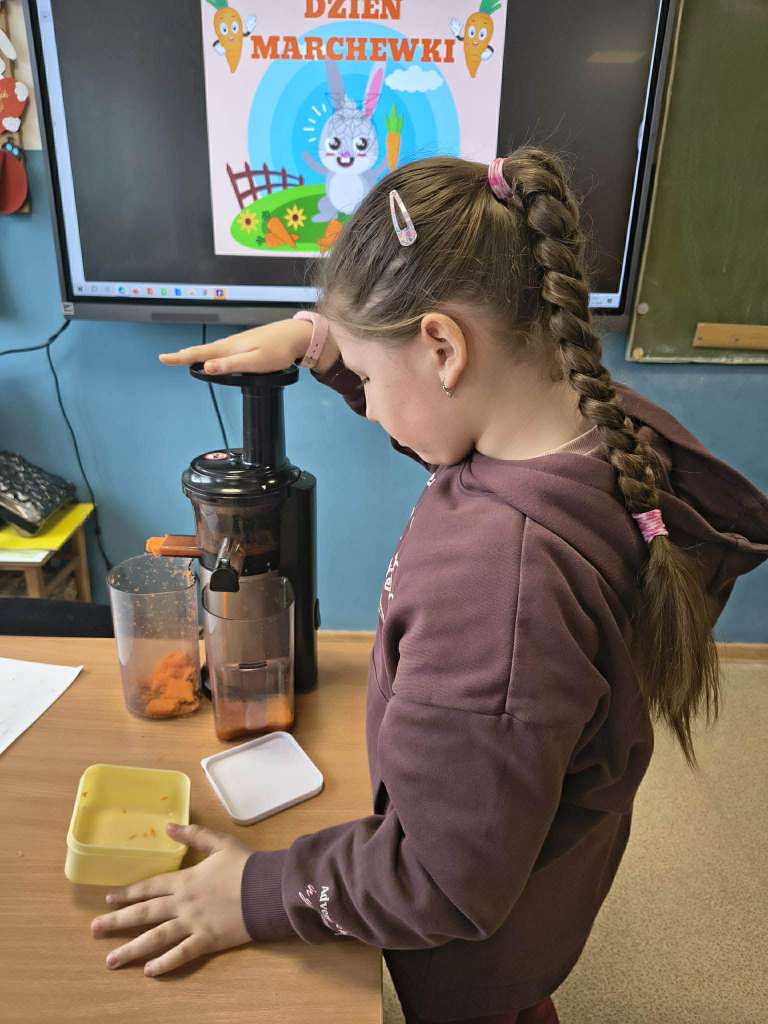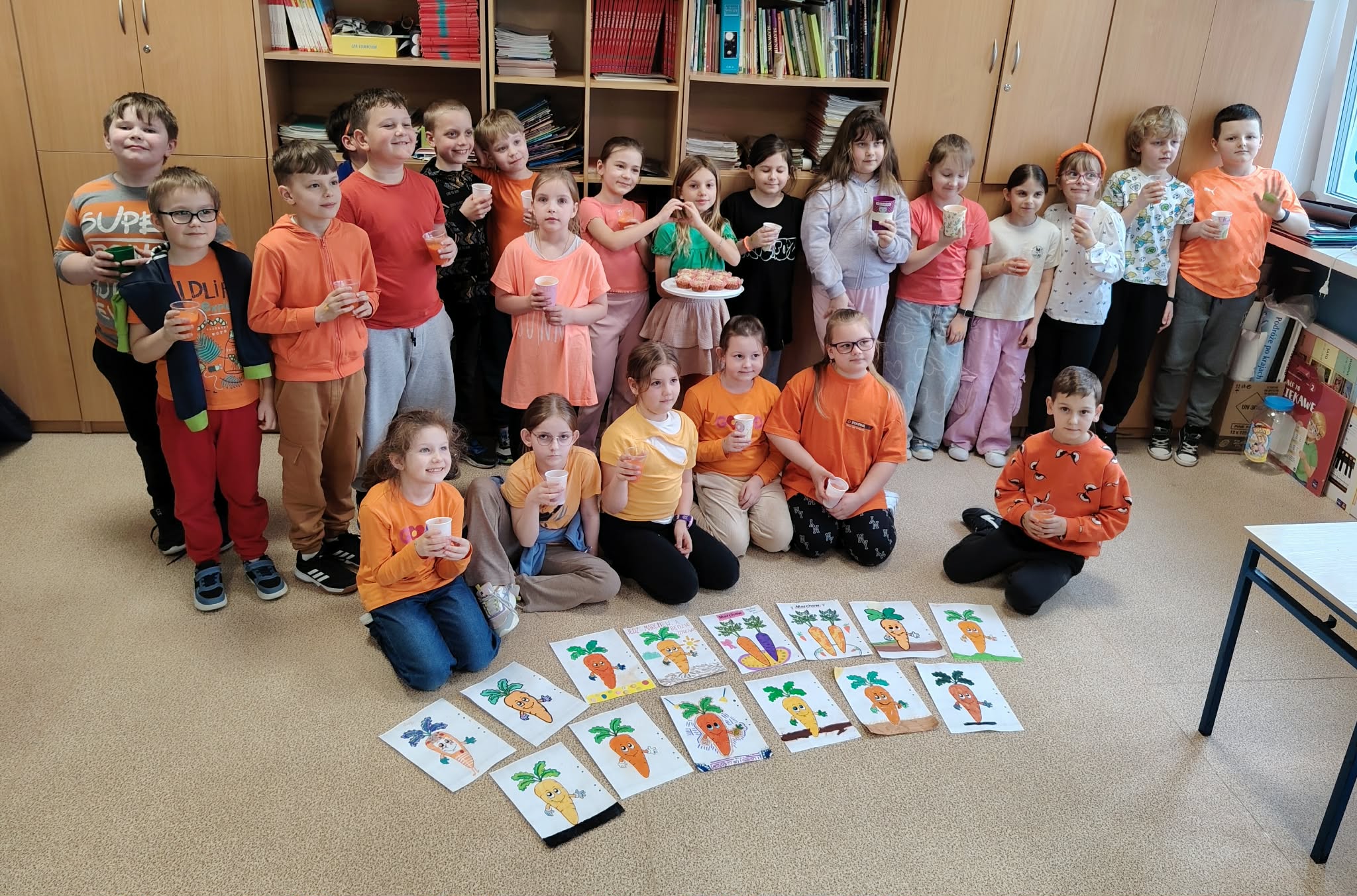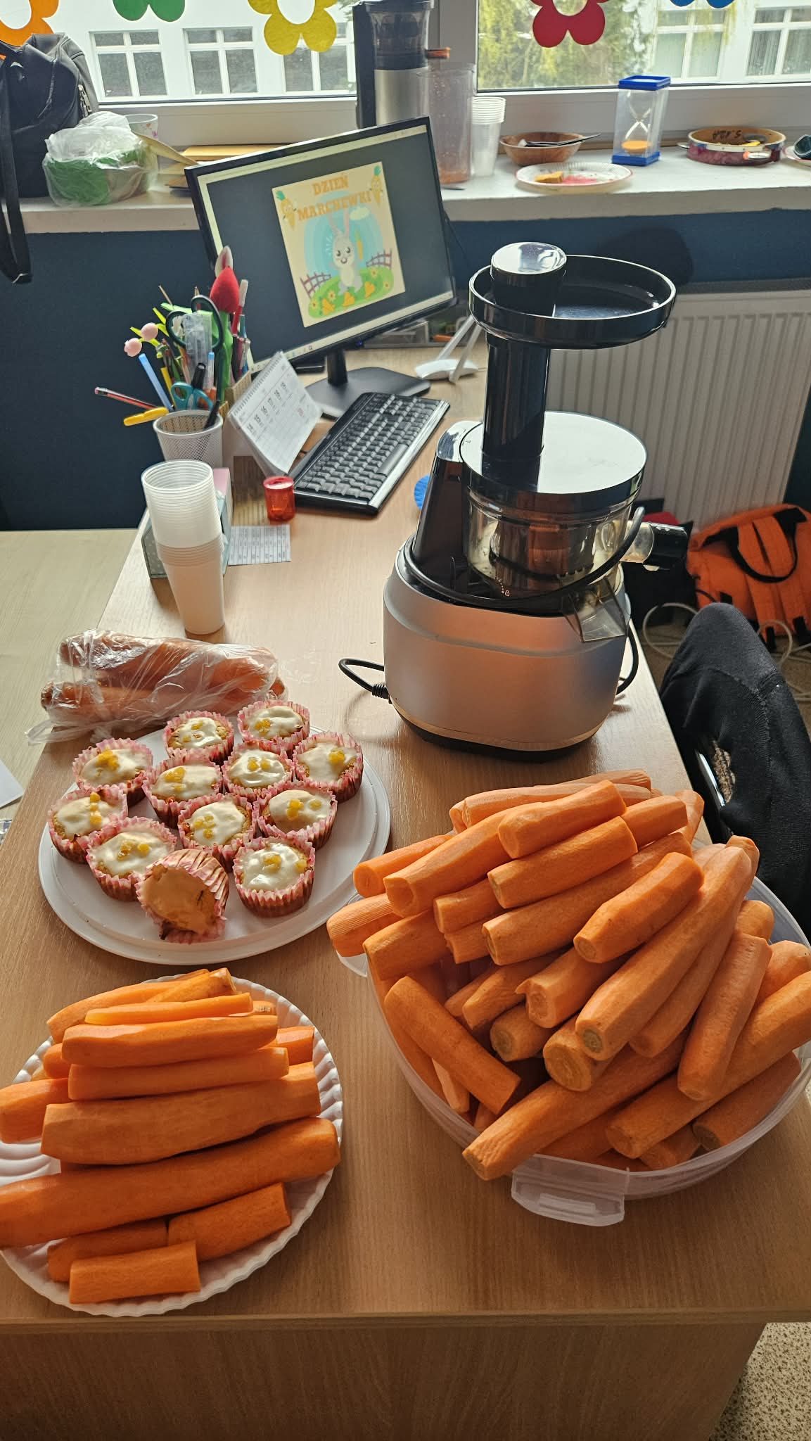 Dzień był pełen zabawy i aktywności. Dzieci degustowały świeżo wyciskany sok z marchewki oraz marchewkowe babeczki. Tego dnia powstały przepiękne prace plastyczne.