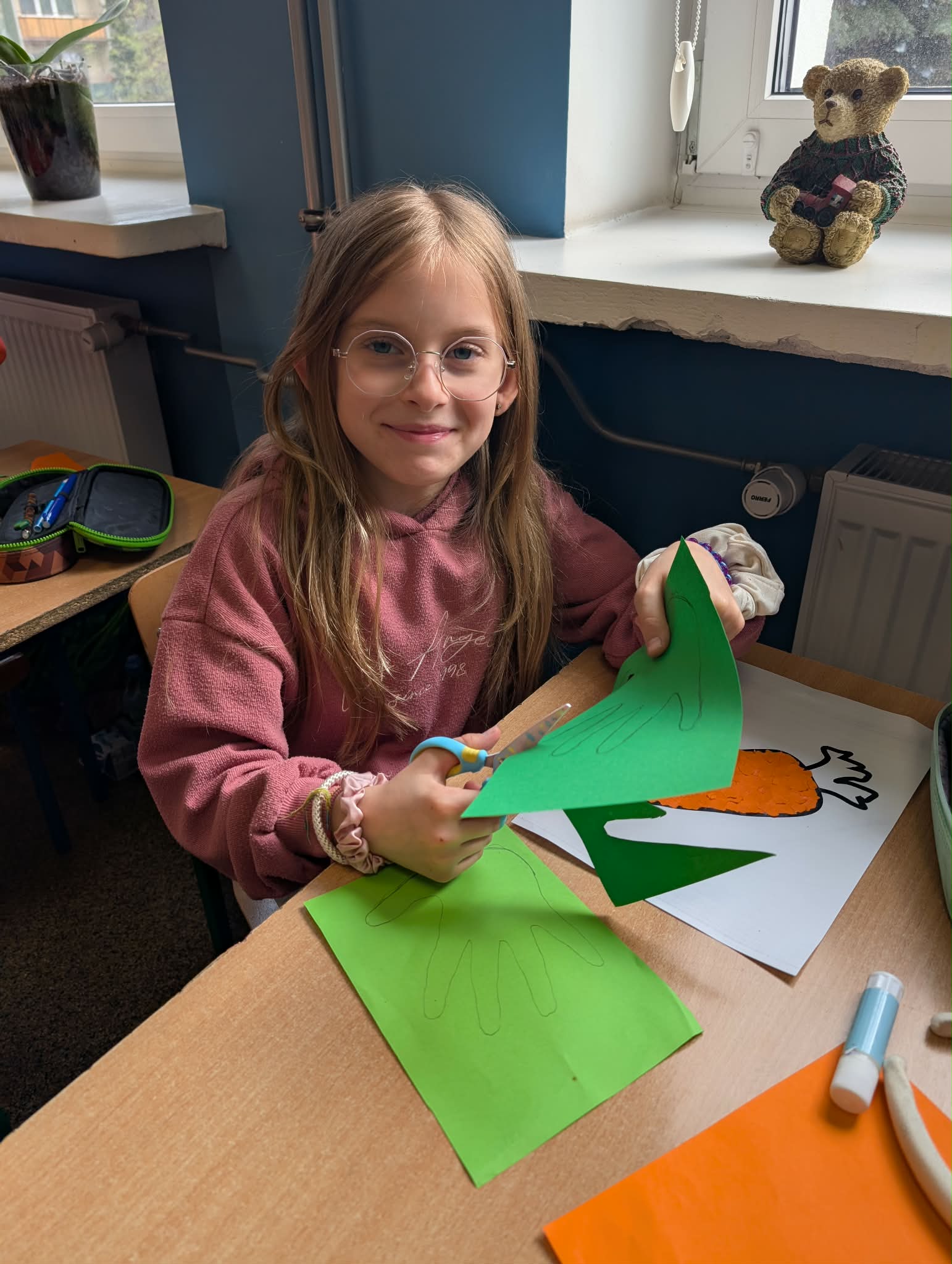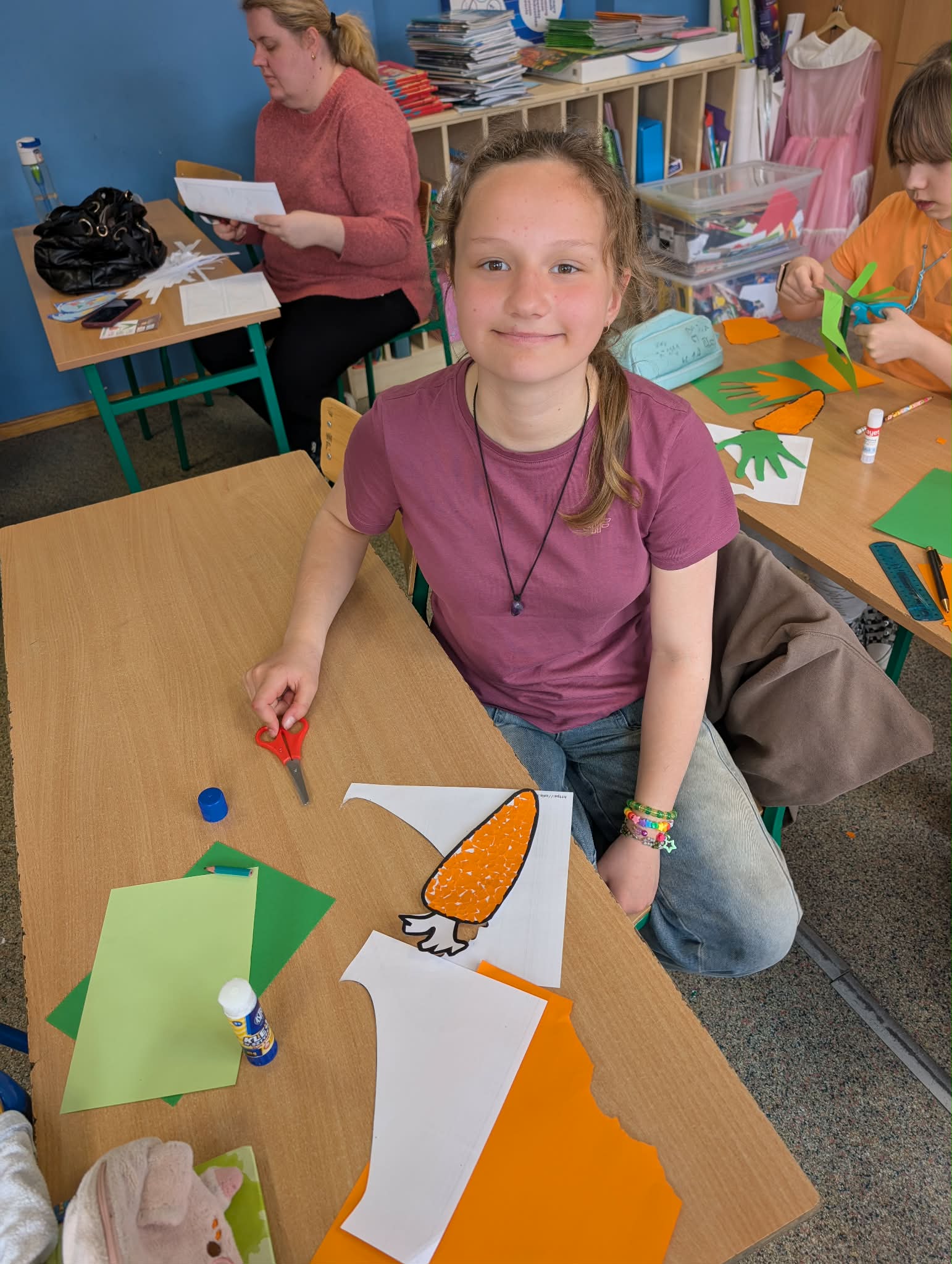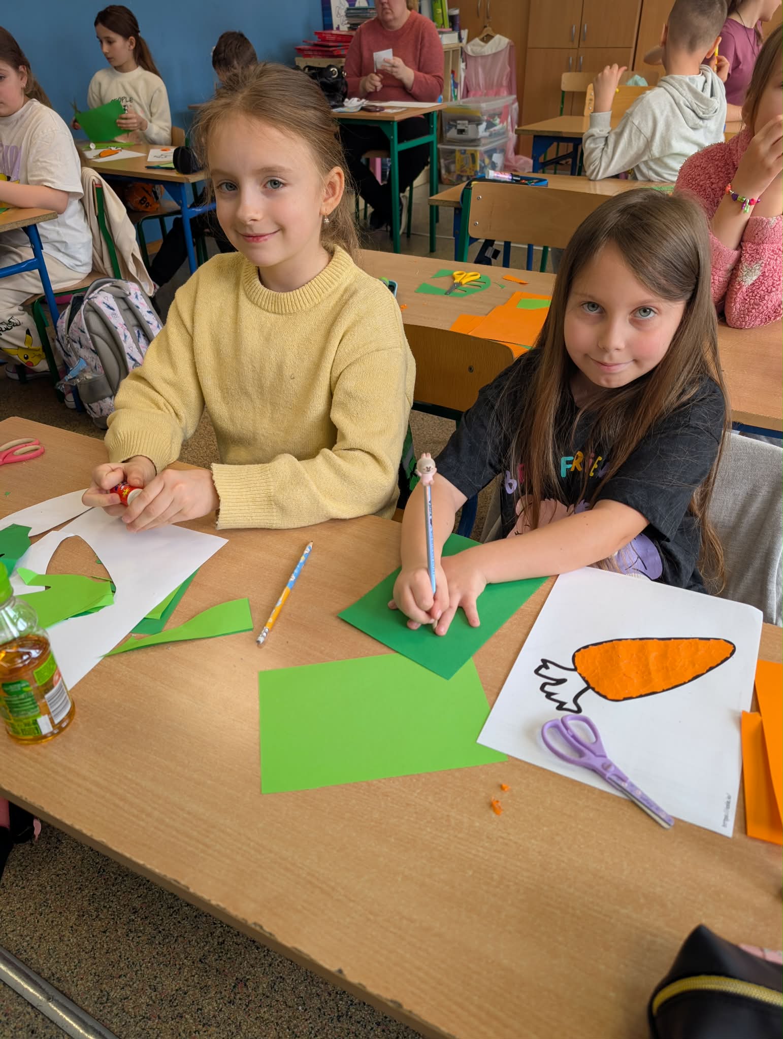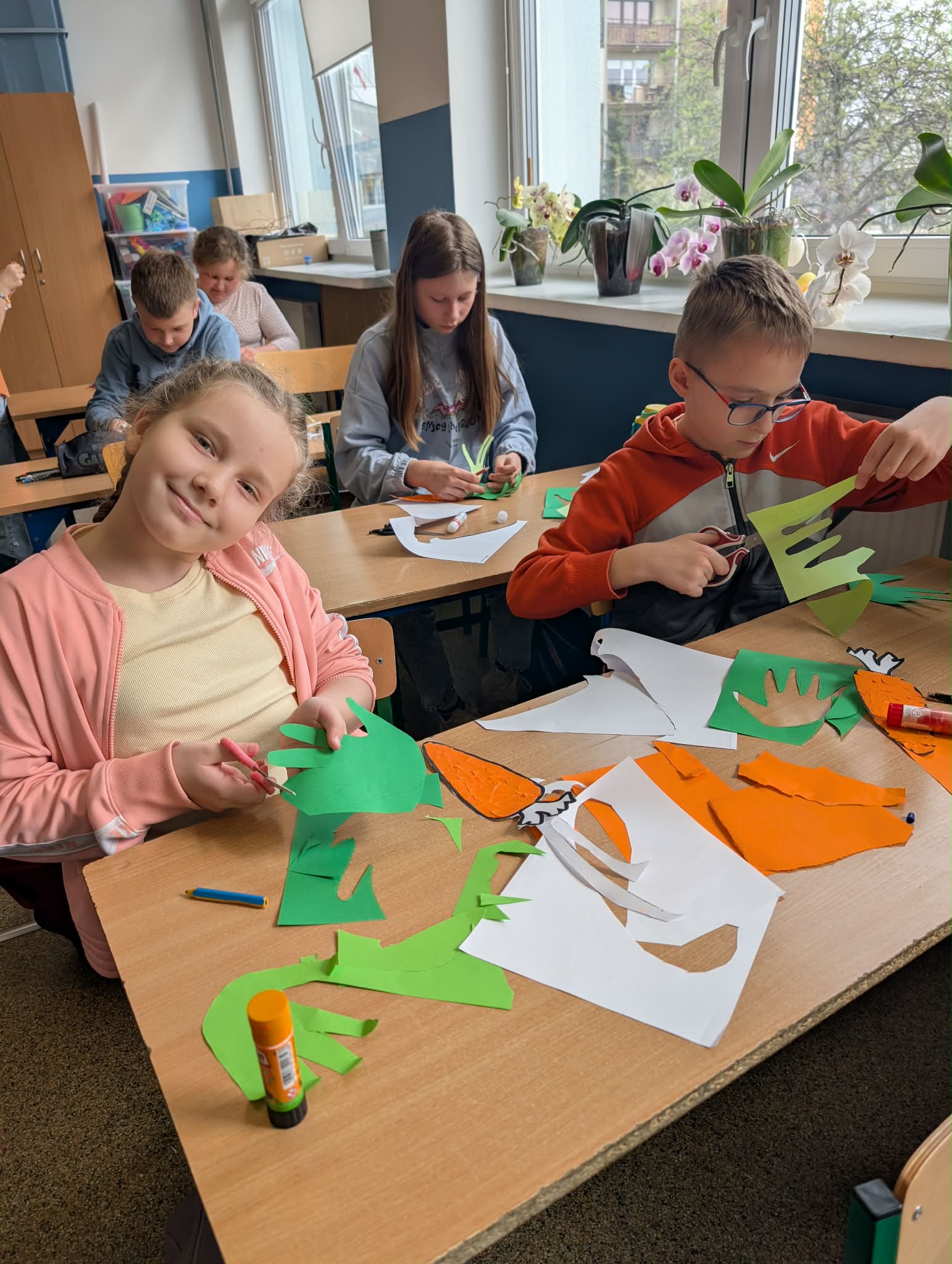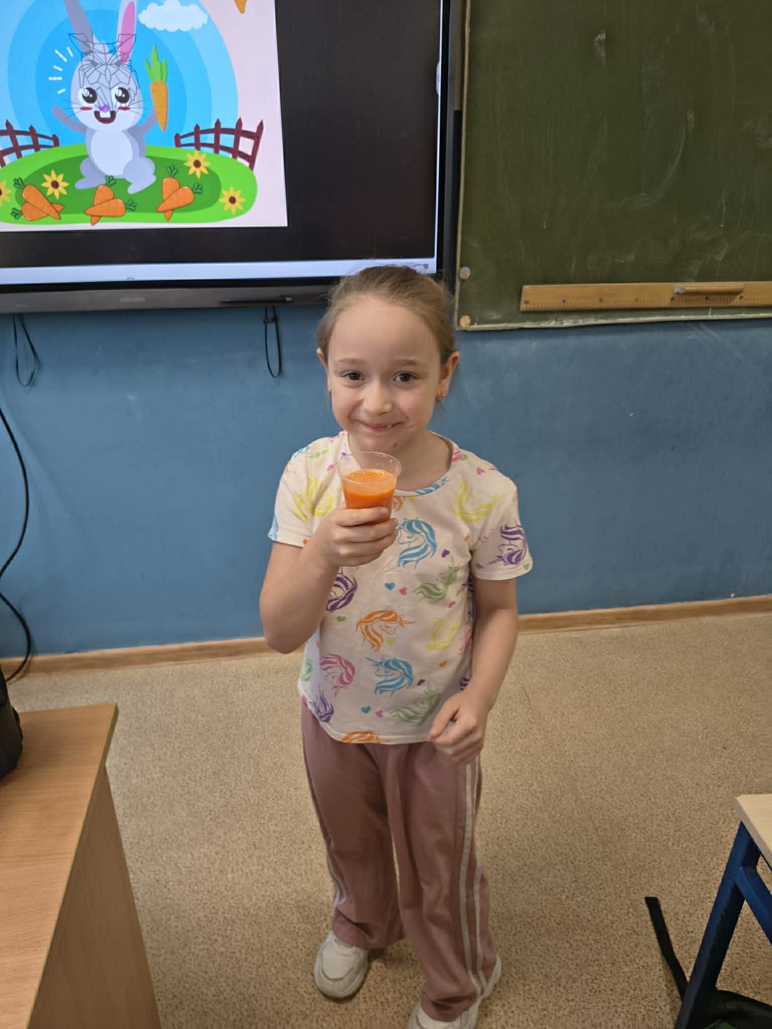 Dzień był pełen zabawy i aktywności. Dzieci degustowały świeżo wyciskany sok z marchewki oraz marchewkowe babeczki. Tego dnia powstały przepiękne prace plastyczne.