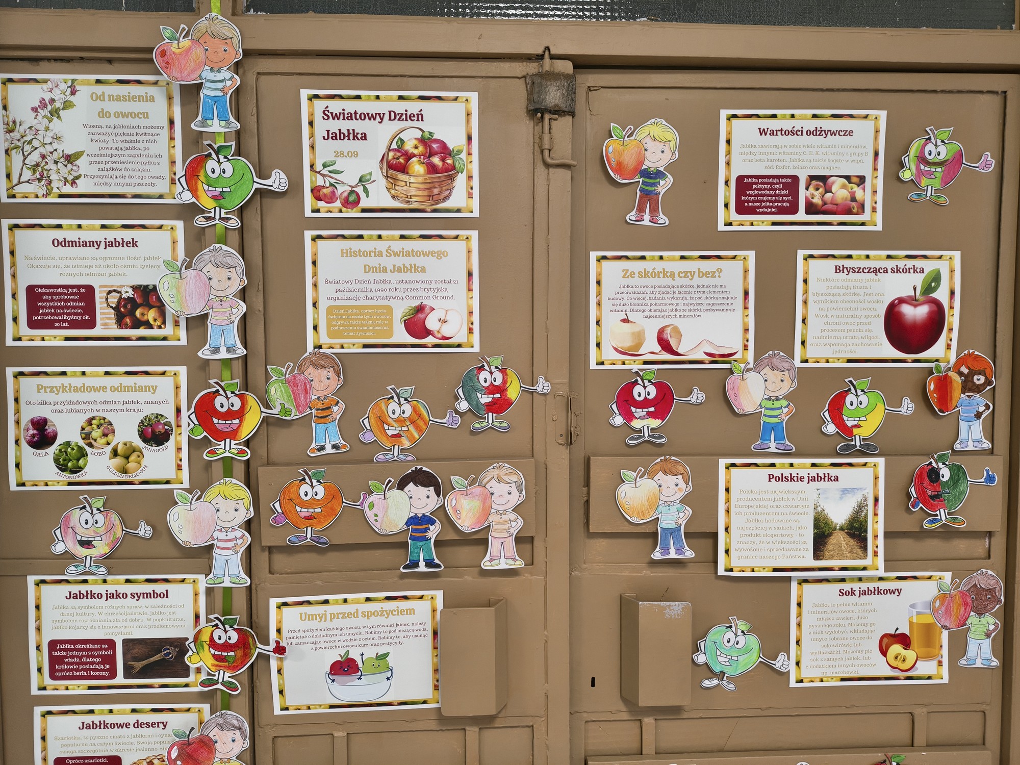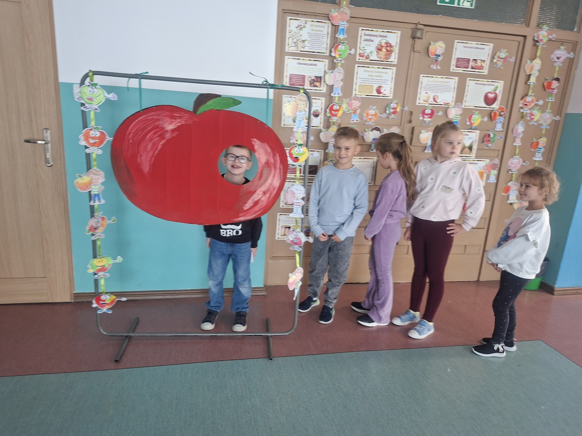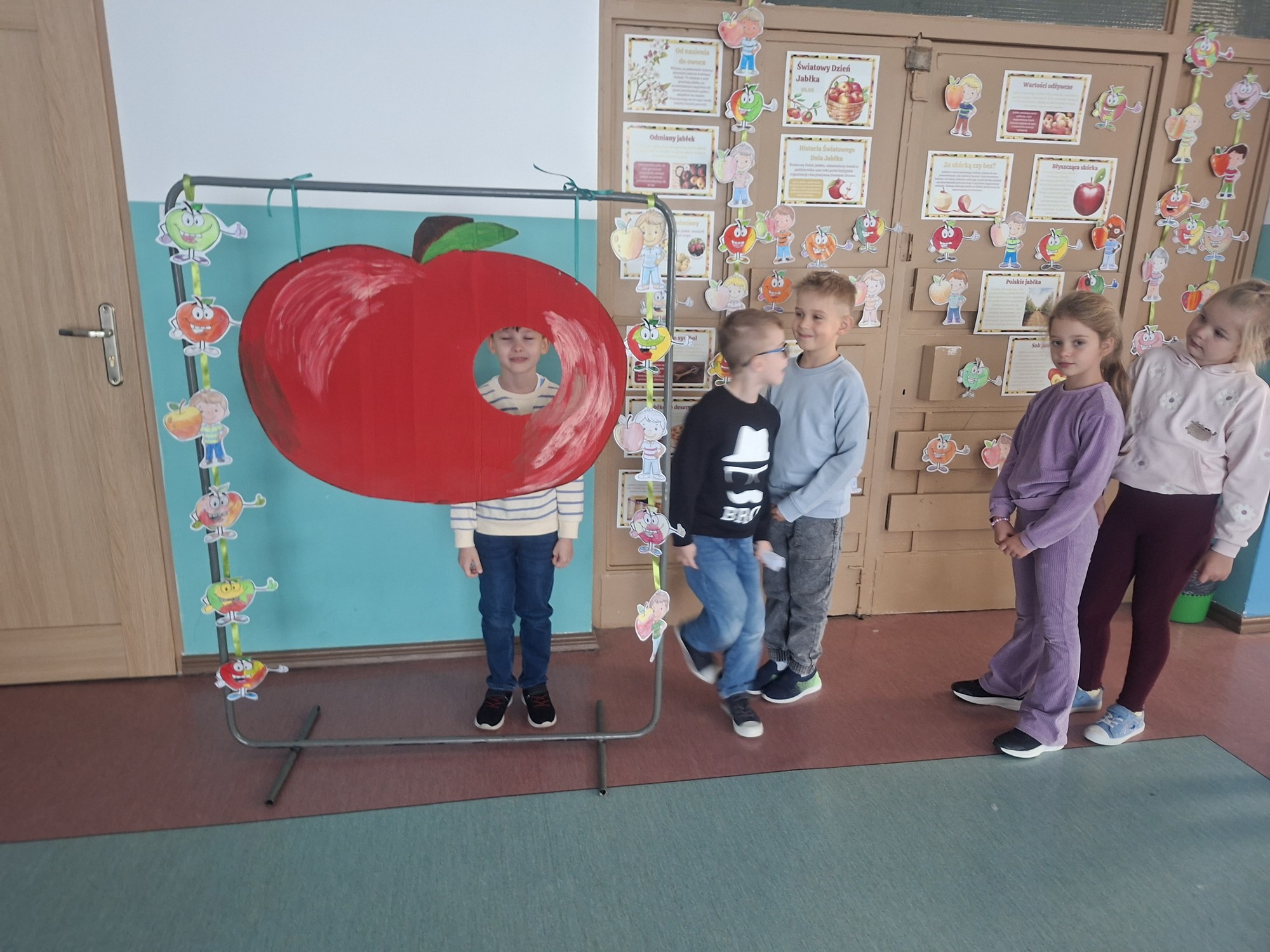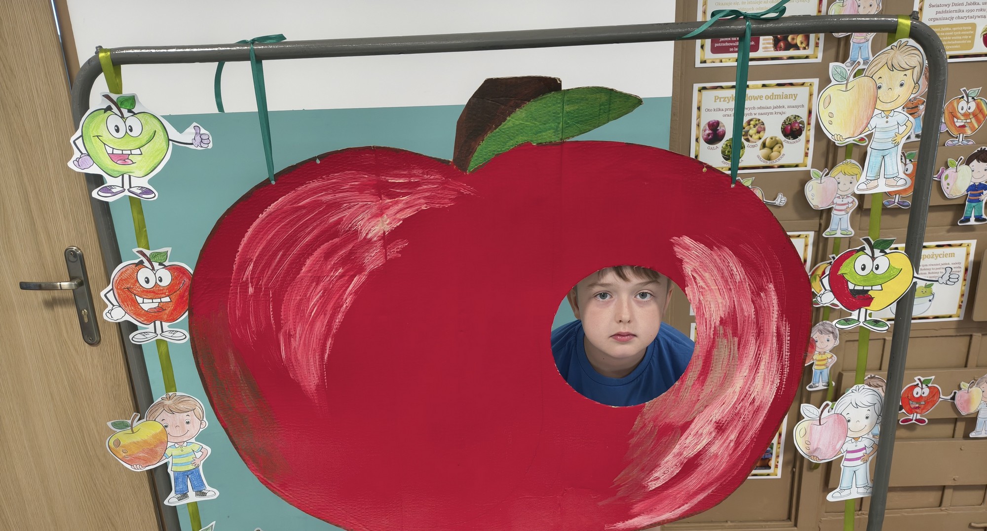 Z tej okazji uczniowie klas IV–VIII, należący do Samorządu Uczniowskiego, przygotowali dla swoich młodszych kolegów i koleżanek z klas I–III specjalną gazetkę z ciekawostkami na temat jabłek.